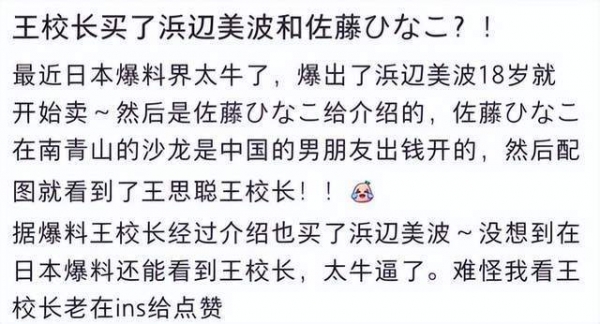 前段时间,日本娱乐圈曝光了一则桃色丑闻,还牵扯到王思聪,据日本网友爆料,有一中国富豪在日本花钱与女明星发生关系,这个富豪就是王思聪。而更令人惊讶的是,富豪与女星发生关系时她还未成年。