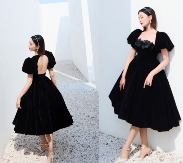 海陆的还一套不同造型也是美的不可方物,短发出镜的她多了一丝调皮,穿着黑色后背镂空中长裙,把精致的蝴蝶骨和清晰可见的背部线条完美展现了出来,这一身装扮在海陆身上体现出了满满的复古感与甜美风采,别有一番韵味。