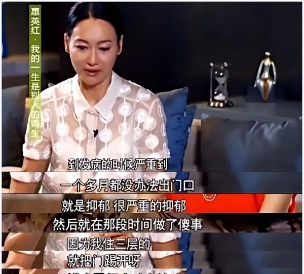 惠英红是影后,22岁就拿到了金像奖的最佳女主角,可是事业并非一帆风顺,曾经跌入谷底,惠英红曾在采访中自爆自己曾想过身亡,得了很严重的抑郁症。