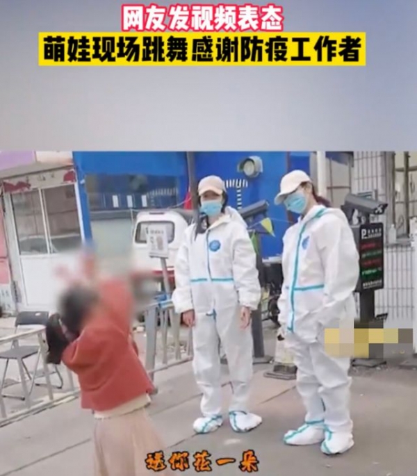 也有很多小朋友在家长的引导下,对可爱的"大白"们唱"听我说,谢谢你~"。他们的初衷虽然是好的,但这种形式主义的慰问与感谢实在没有必要。
