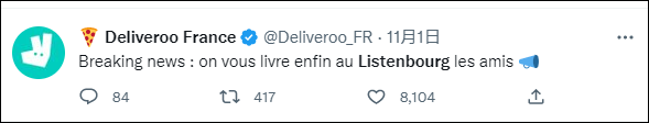 直至今天,"里斯腾堡(Listenbourg)"的话题依然挂在推特法国地区的热搜趋势榜上,而博主Gaspardo的那条原始推文的转发引用已经破万次,点赞数目前也已超过11万。
