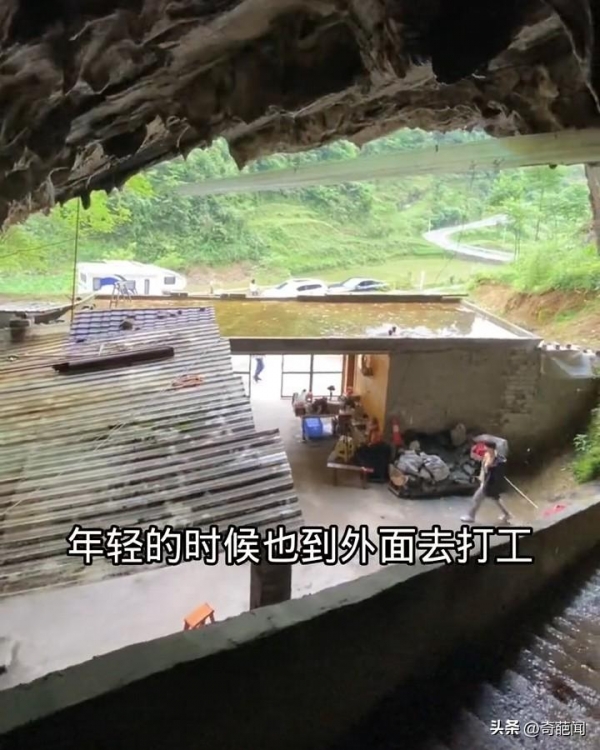 从拍摄的视频画面显示,男子一家人在这个天然形成的山洞里自建了一套房子供日常起居生活,此外山洞里有一条地下暗河里面有鱼,山洞周围男子自家还耕田种地养猪养鸡,供应一家人常年食物上的需求。