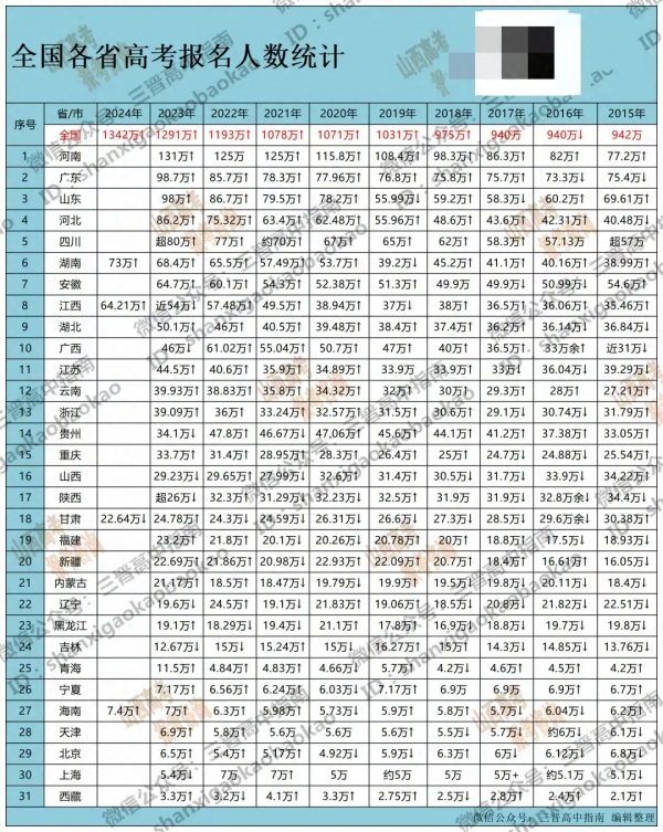 近年各省高考人数统计