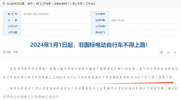 3、2024年1月1日起,江西赣州超标电动车禁止上路行驶