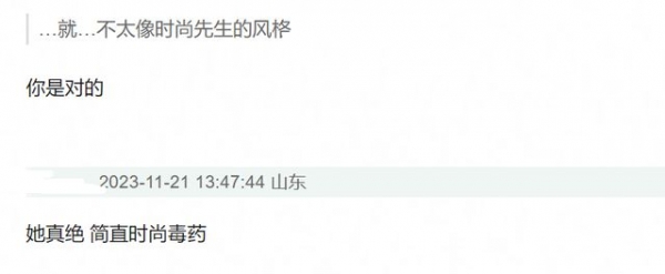 这样的穿搭倒是符合潮流风向,不容易翻车,但若是本身缺乏时尚感,也很难发挥出令人惊艳的穿衣效果。早在上半年,超模杜鹃就曾穿过这一套,在杜鹃的身上,似乎更能展现出该套穿搭的清冷质感,凸显该品牌的品质。