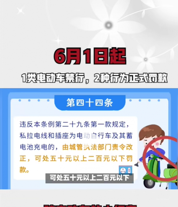 2024年电动车新规要正式实施了!从2024年6月1号开始,电动车按照新规,违反规定者,最高罚款5万元!这可真是让电动车主们捏了把汗啊!新规主:要整治电动车的乱停乱放、乱充电、乱改装等问题,街道更加整洁有序。另外没有整车3C认证的电动车也别想上路了。这新规一出,可是给电动车行业来了个大洗牌,咱们可得好好了解了解,别一不小心就踩雷了!