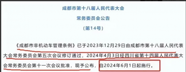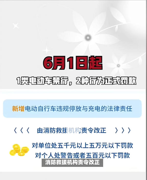 另外自2024年6月1日起《成都市非机动车管理条例实施》该条例属于新修订版该版本,而修订的背景和违规停放充电火灾对等问题息息相关。明确违规停放和充电消防救援机构责令改正,对单位处5000元以上5万元以下罚款,对个人处警告或者500元以下罚款。