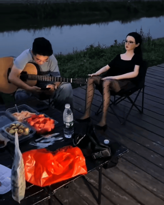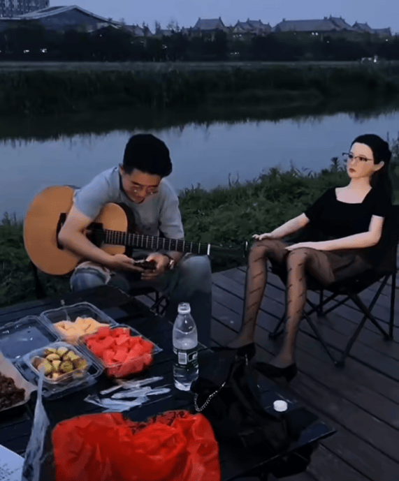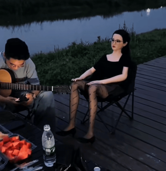 只是在围着露营桌子落座的多名小伙子之外,男子所带的硅胶实体假人似乎就成了现场最备受关注的存在,虽说被男子安排坐好之后的实体硅胶假人没有半点动作,可这种在大部分人印象中有些敏感的商品,也的确是很难做到平淡对待。