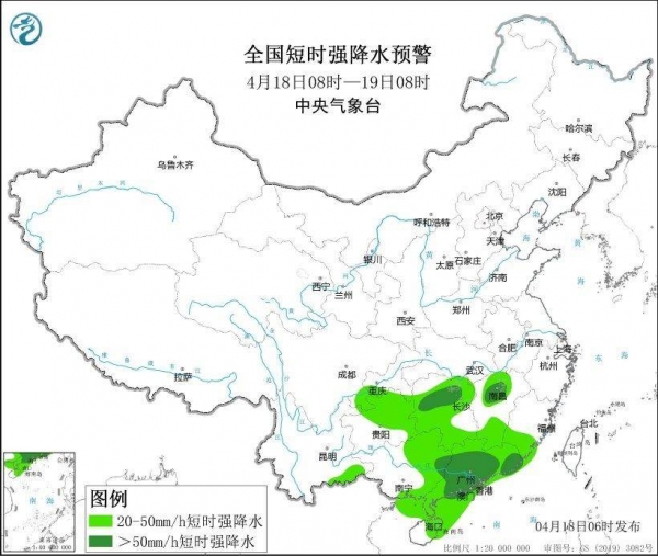 中央气象台4月18日06时发布暴雨蓝色预警: