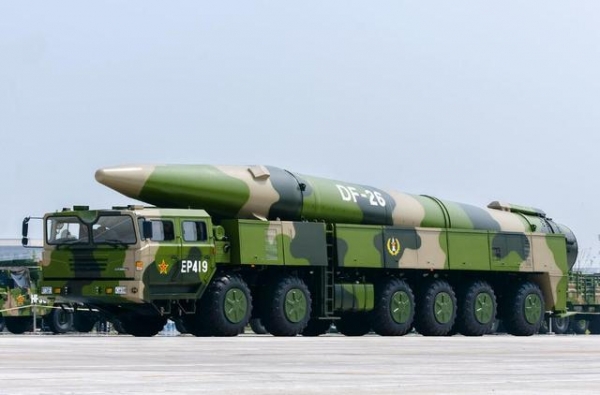 目前火箭军的常规导弹部队里有两种武器值得单独说说,第一种就是反舰弹道导弹,代表型号是东风21D和东风26两种导弹。这两种型号都采用机动平台搭载,具备命中海上运动目标的能力,这也是解放军的独门秘笈,其他国家暂不具备相似的能力。
