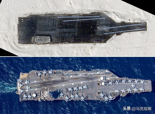 美商业卫星公司星球实验室2024年对外发布最新图像显示,在中国新疆塔克拉玛干沙漠导弹靶场,近期出现了一个新的航母靶船目标,不论从尺寸到甲板上弹射器轨道来看,都非常类似于美国海军新型航母"福特号",这引起了美方警惕。