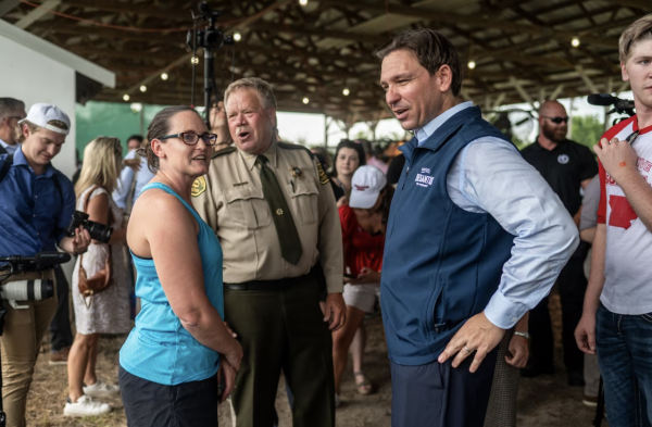佛罗里达州长德桑蒂斯在竞选活动中与支持者交流。(图源:社交媒体)