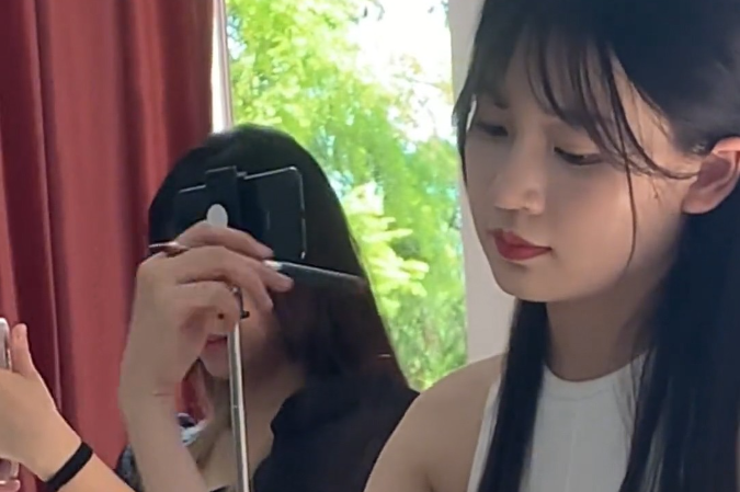 只见她一头黑色秀发如瀑布般披肩而下,此外在一袭白色连衣裙加身下更是将皮肤映衬得白皙细腻,五官精致动人,简直就是校园里走出来的绝世尤物!看着老师专心致志备课件的样子,让人忍不住赞叹声连连。