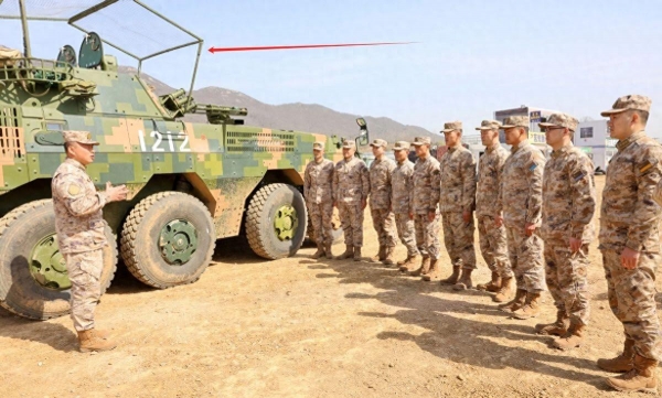 从照片来看,在一辆国产ZBL-08轮式步兵战车旁边,一名可能是车长兼班长的士兵,正在向对面站成一排的士兵们讲话,这些士兵大概率属于同一个班,班长可能是在进行战术讲解、说明训练科目或进行训练总结。考虑到ZBL-08轮式装甲车是解放军陆军中型合成旅的主战装备,故这可能是陆军某中型合成旅在训练场上刻苦训练的一个缩影。值得注意的是,在这辆轮式步兵战车的炮塔上方,出现了一款"非原装"装备,那就是自俄乌冲突爆发后逐步"流行"起来的顶部防护网。