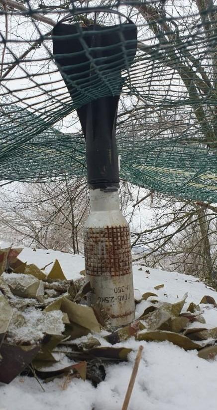 无人机投下的炸弹被防护网卡住