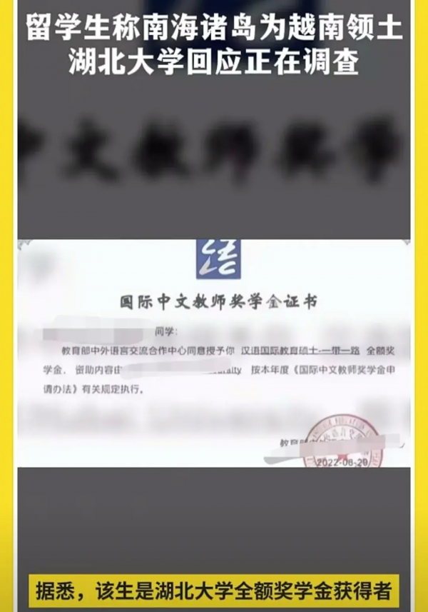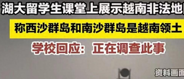 近日,5月14日,据网友发布的视频称,湖北大学的一名越南留学生在课堂上展示越南非法地图,并宣称西沙群岛和南沙群岛是越南领土。