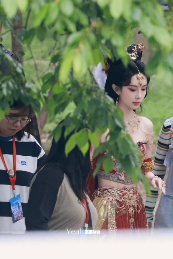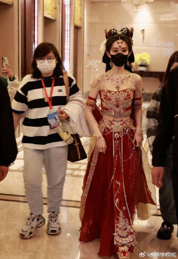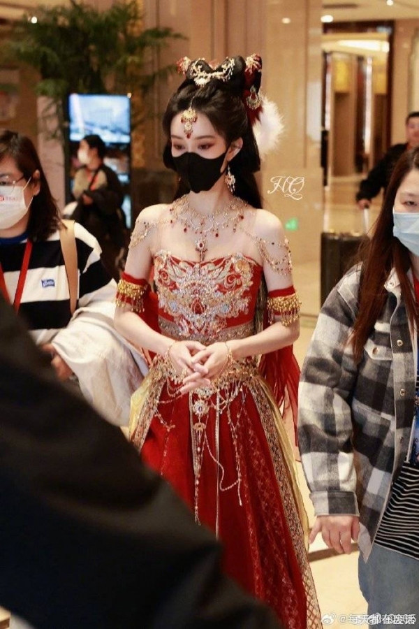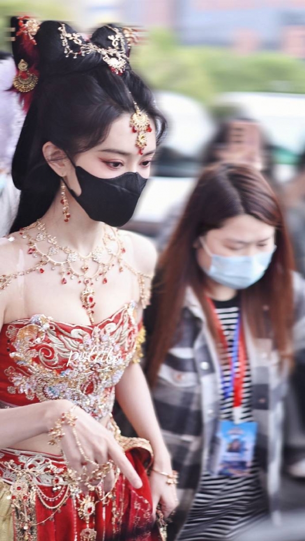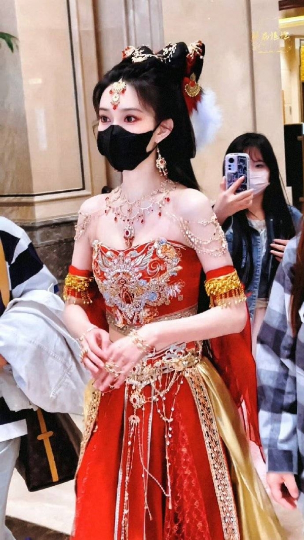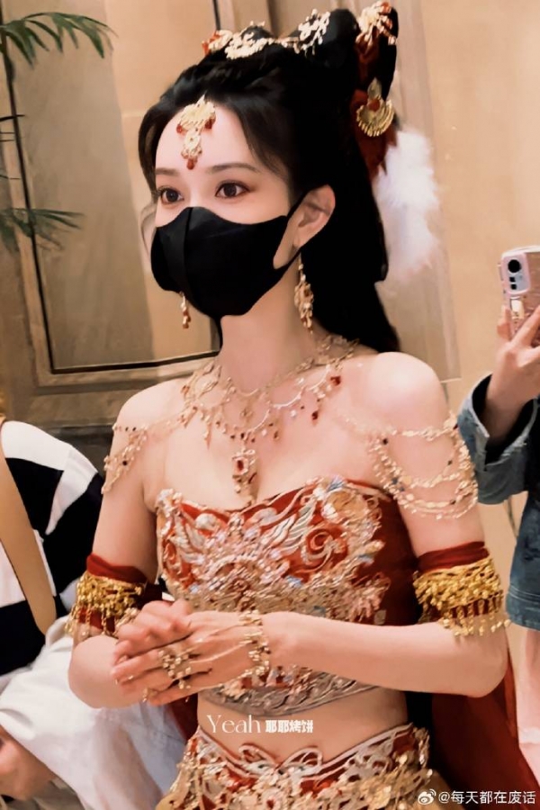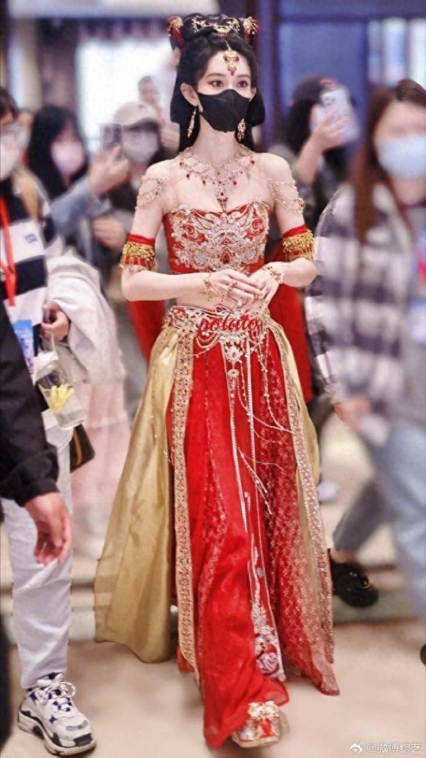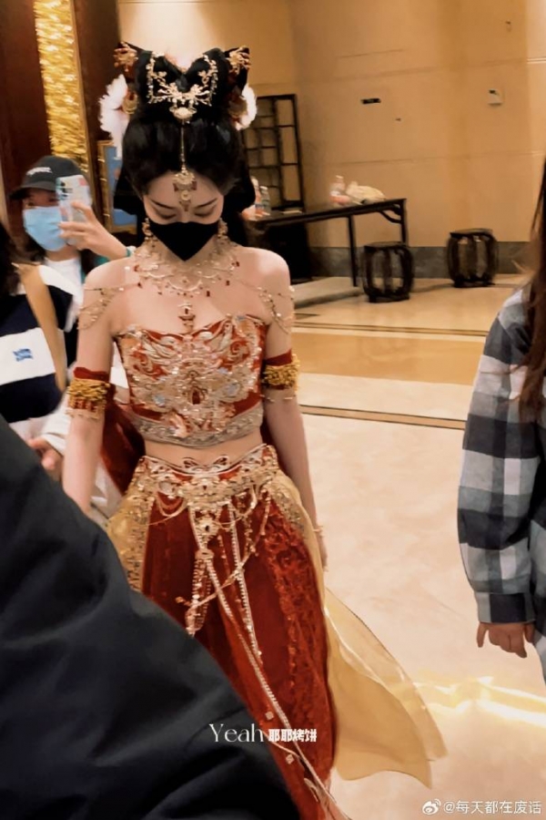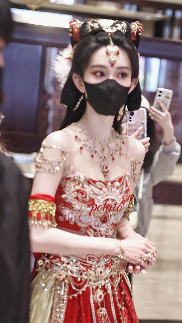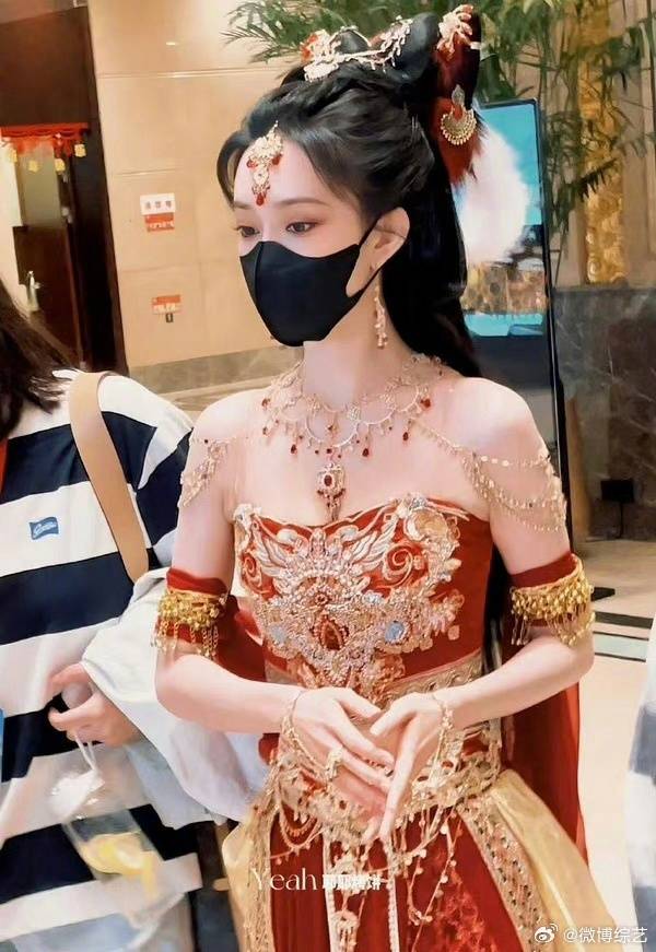 片场路透 孟子义 一身红衣九尾狐造型扮演妲己,徐志胜 cos大胡子纣王!孟姐还给志胜扶帽子!简直美神下凡 徐志胜的纣王也是很徐志胜呢