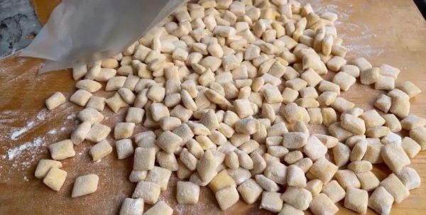 10.最后切成这样均匀的一颗颗,盖上保鲜膜静置发酵一段时间。
