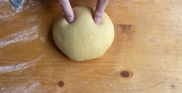 7.然后上手将面絮揉成这样一个光滑的面团。