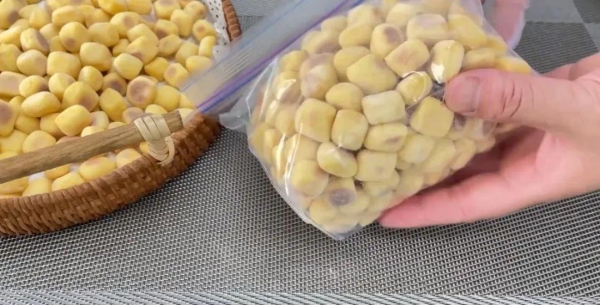 15.凉透后装进一个密封袋中,密封保存好,放上一个月都不会坏,这样炒出来的南瓜小馒头好吃又营养,拿来当零食,老人小孩都爱吃,口感香甜酥脆,好吃还不上火。