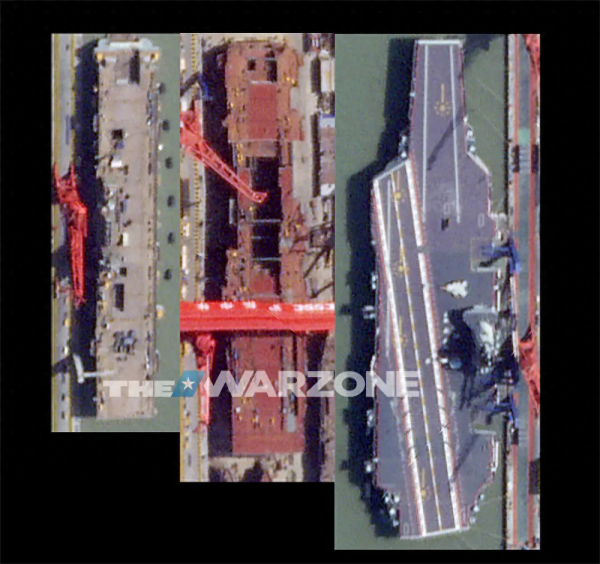 美媒发布的中国新型两栖舰卫星照(中间)