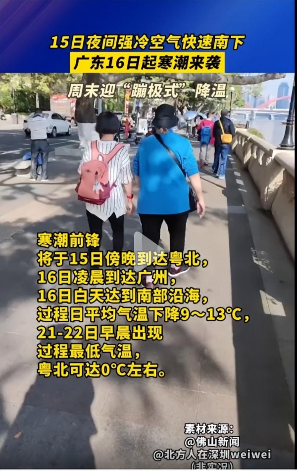据了解,15日我市最高气温将再次冲上29℃,然而这只是短暂的回光返照。随着强冷空气的到来,我市的气温将从29℃骤降至10℃左右,并伴有小雨。粤北山区的气温更是将降至零度以下,这样的降温幅度无疑让人感到震惊。