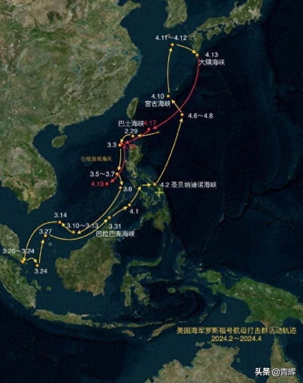 4月18号的时候刚刚离开我们的南海仅仅18天时间的美国罗斯福号航空母舰,又再次通过巴士海峡重新返回了南海。
