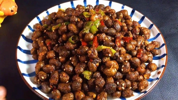 8.这样做出来的山药豆,香辣入味,回味无穷,一口一个,比孜然小土豆还过瘾。