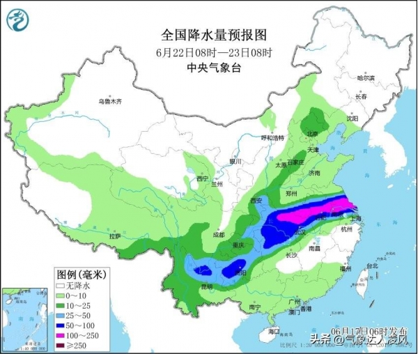 由于水汽输送特别强势,因此从20号起,西南东部、江南西北部、江汉、江淮中南部的降水强度也特别大,大雨是基础,暴雨不稀奇,大暴雨也有可能天天见。中央气象台最新的中期降水预报已经指出,未来十天我国长江流域将被大面积暴雨区覆盖,尤其是贵州南部、湖南西北部、湖北南部和东部、河南南部、苏皖中南部、上海大部累积雨量可达250到400毫米,雨水将较常年同期偏多3-7成,局部偏多1倍以上。