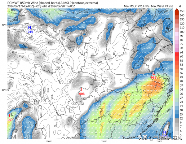 而从今天夜里起,副热带高压将快速发展增强,我国主雨带将在两天内急速北抬上千公里,从广西北部、福建西部地区一路冲到河南南部、苏皖中部地区。从20号起,我国江南、华南大部都将被强盛的西南急流控制,出现又湿又热的桑拿天气;而主雨带则位于急流边缘地区,也就是湖南西北部、湖北中东部、苏皖中部一带。