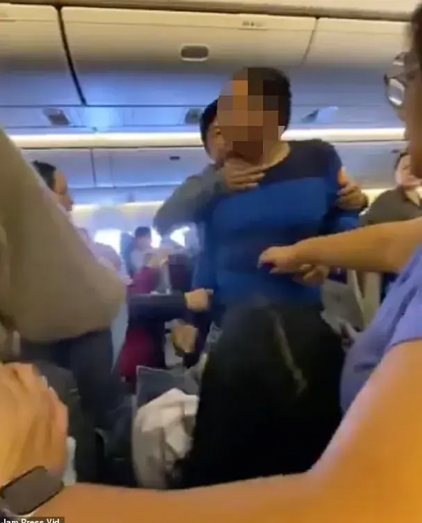当两人在过道上互殴时,可以听到乘客们的尖叫声,最后机组人员在其他旅客的帮助下终于将两人分开。