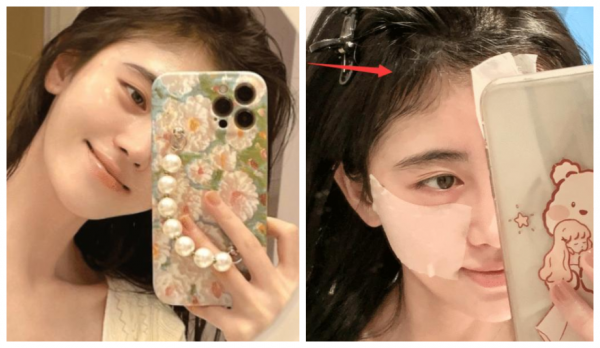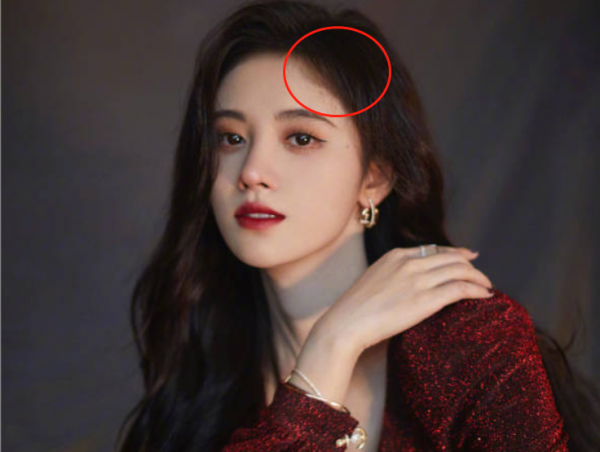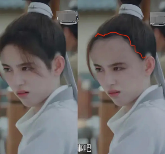 发际线粉饰的地方显得格外的突兀,可能是为了更加精致,让她的脸看起来没有那么长,所以对发际线做了处理。