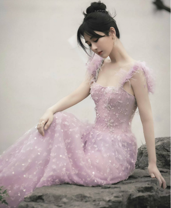 活动当天,杨紫身穿一袭紫色抹胸长裙,这件礼服完美的展现了她美丽的曲线。