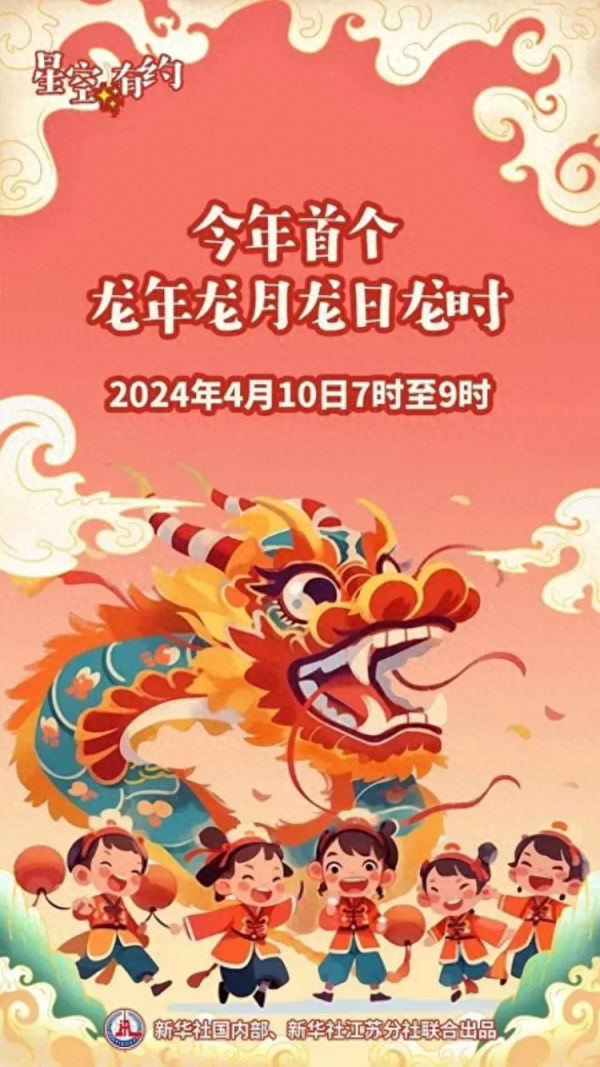 "我国古人又以十二生肖对应各个地支,今年为甲辰龙年,所谓龙月、龙日、龙时即为辰月、辰日、辰时。"王科超说,2024甲辰龙年的龙月里有3个龙日,因此将出现3个"龙年龙月龙日龙时",分别在4月10日、4月22日和5月4日的7时至9时。