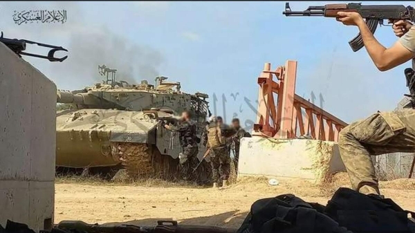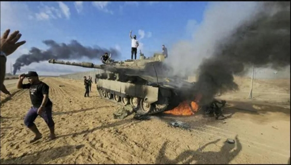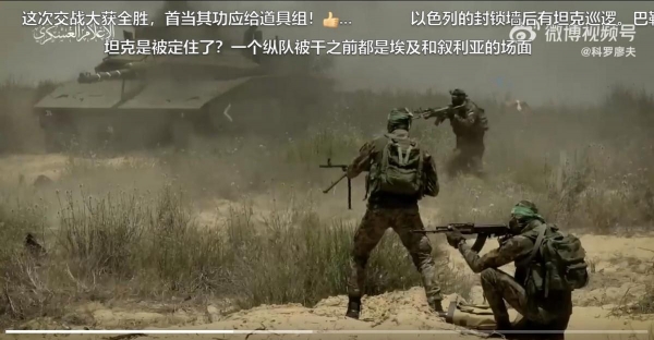 哈马斯巧妙伏击,"全歼"以军梅卡瓦坦克纵队。哈马斯武装在10月14日发布了一段视频,宣称:"这是给以色列地面部队的信息,当你进入加沙时,这就是等待着你们的下场!"