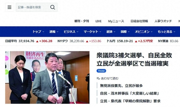 【环球时报驻日本特派记者 岳林炜 环球时报特约记者 于文】"这是一场决定岸田政府命运的战斗"--被日本媒体如此描述的是一场规模并不大的众议院议席补选,但却成为日本首相岸田文雄的"命运之战"。据共同社报道,日本众议院3个小选区28日进行议席补选,当晚的开票结果显示,自民党全面败北,最大在野党立宪民主党赢得了所有席位。这3个补选席位原本均属于自民党,全部丢失将对岸田政府造成巨大打击。日本《每日新闻》28日称,这次补选被定位为预测岸田首相未来走向的试金石。结果显示,自民党的齿轮继续失控,"保守王国"的"最后据点"崩塌,自民党的惨败使得岸田的首相之路荆棘丛生。
