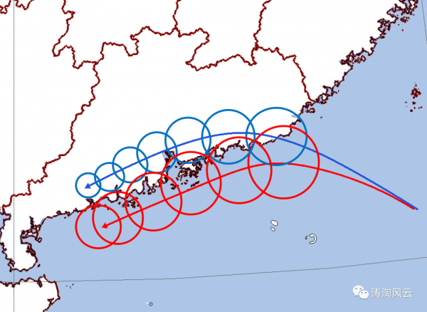 就是中心登陆粤东,然后沿海岸线移动,强度缓慢减弱。但很显然,还有一种可能是中心不登陆,在海上近海沿岸移动。