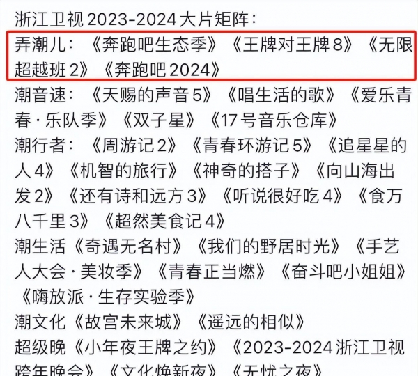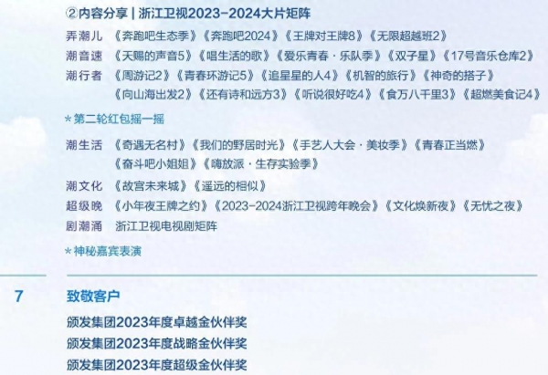 剧集寻求赞助。浙江卫视也展示了2023-2024年大片矩阵,引起了网友们的关注。