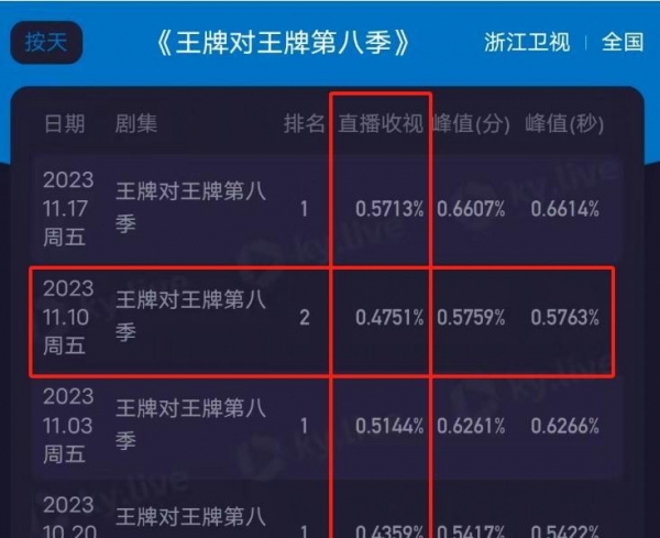 这样的收视数据还能支撑浙江卫视一年的商业合作吗?相比以往,收视率几乎被砍了一半。