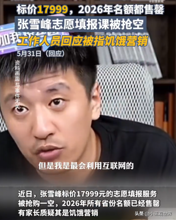 原来,最近知名教育博主、"网红教师"张雪峰在直播间开始售卖志愿填报课,价格高昂,接近2万元,甚至连2026年的名额都被一抢而空,引发了网友的不满。
