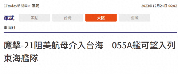 这不,台湾的ETtoday新闻云网站就怀着极度复杂的心态,报道了解放军海军新一代大型驱逐舰055A的发展情况。台媒认为,055A大型驱逐舰大概率会在东海舰队服役,且将会凭借堪称全球驱逐舰第一的战力,阻击美国航母战斗群介入台海。这就是台媒的所有认知了,人家就认为这种1.2万吨级别的大舰,是为应对他们准备的。