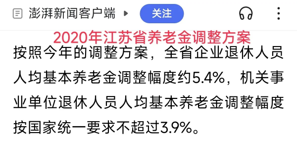 还是要特别分享一下,虽然说养老金调整是统一方案、统一方式,但是退休老人的人均养老金涨幅,企业退休人员还会更高一些。比如说2022年人均养老金增长幅度是5%,但是,江苏省公布的调整信息中显示,企业退休人员比机关事业单位退休人员的养老金涨幅要高1.5个百分点。