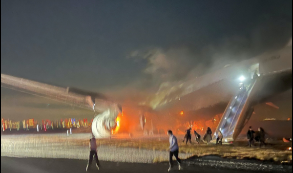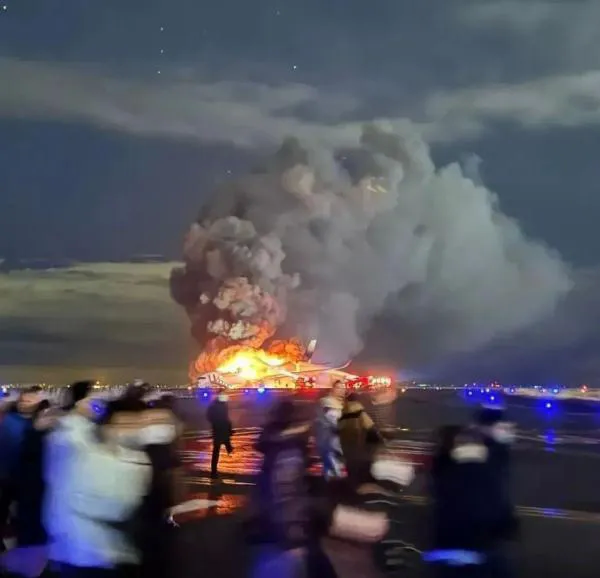 日本东京羽田机场一架载有300多人的日航客机今日(2日)傍晚降落时擦撞后起火。网上片段见到,机舱内当时猛烈摇晃,不断有广播。