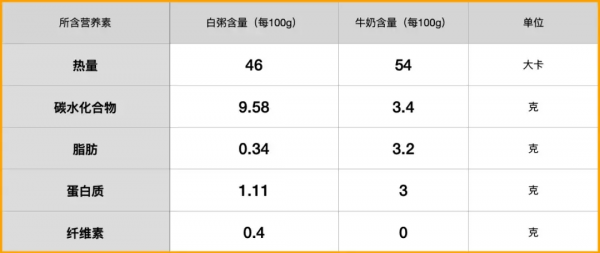 在白粥所含的营养素里,90% 以上是淀粉,也就是碳水化合物,蛋白质含量却只有 1%,脂肪和膳食纤维几乎没有。