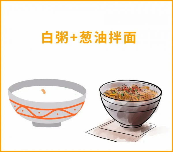 【白粥+油条】或者是【白粥+葱油拌面】的组合,基本上是【全碳水+零优质蛋白质+零维生素】。
