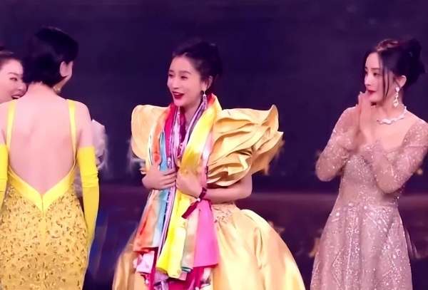 杨颖之前的生日庆祝向来十分佳话传世。2021年,她依旧光彩夺目,以一袭淡黄公主裙亮相行业晚会,时轻盈似梦似幻。主办方为她精心准备,且邀请她领奖并进行交流,令她成为全场焦点人物。