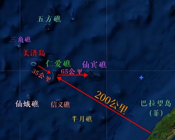 从地图上可以看到,仙宾礁位于仁爱礁以东约65千米,距离菲律宾的巴拉望岛大约185千米,是整个南沙东南部的前哨,这里正好和美军驻扎的"安东尼奥·巴蒂斯塔"空军基地隔海相望。所以如果解放军控制了仙宾礁,不但可以直接切断仁爱礁和菲律宾本土的联系,同时也可以有效克制美军驻扎的巴蒂斯塔基地。所以无论是出于个人利益,还是应美国的要求,小马科斯都必然会派出船只在仙宾礁"闹事"。