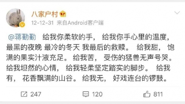 而且陈建斌为蒋勤勤写过的传情小诗,实在是很多呢。