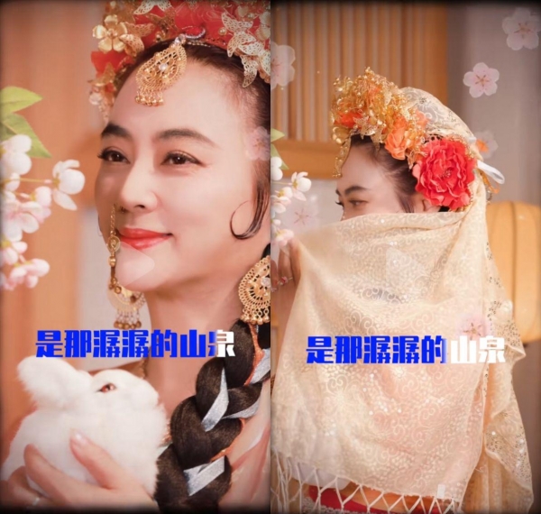 视频一下换到另一个场景,李玲玉拿着玉兔扇,站在桃树旁,仿佛真的置身于西游记,接着李玲玉又抱来玉兔,面带笑容,眼神坚毅望向别处,而后又更换道具,用白纱遮住害羞的脸庞,一颦一笑十分活泼,充分还原了当年的玉兔精。这么多道具,李玲玉老师的准备也算齐全。