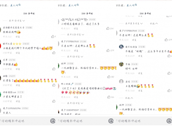 李玲玉这次的经典重现也引得网友感叹重重,留言说自己小时候光看猴去了,错过太多。还有网友惊叹于李玲玉的不老容颜,纷纷夸赞道:"李玲玉老师,你是可爱的女神,你永远是最棒的!""大美人""年轻貌美"。还有网友的花式称赞"不愧是妖精,这么多年长生不老"。